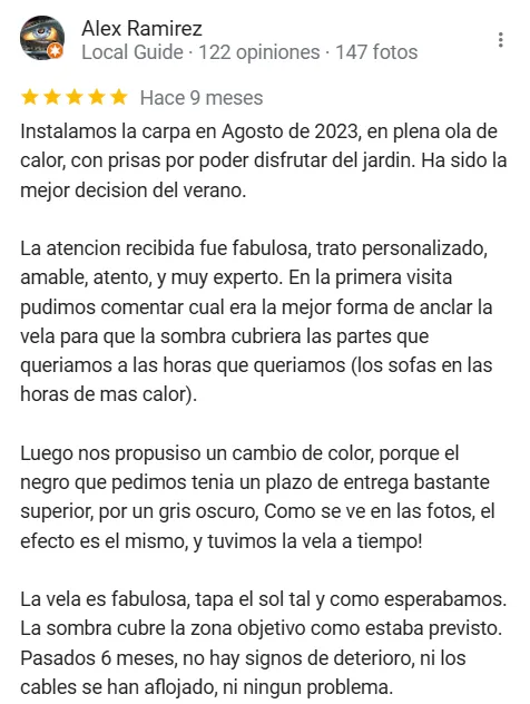 Desde hace más de 15 años, shadedesign suministra las velas de sombra de mejor calidad al mercado español.